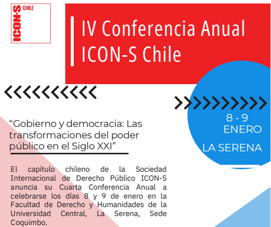 La IV Conferencia Anual ICON-S Chile se presenta como un espacio de alta relevancia académica para estudiantes, profesionales y especialistas interesados en debatir y profundizar sobre el rol del Estado, la democracia y las instituciones públicas frente a los desafíos del siglo XXI.