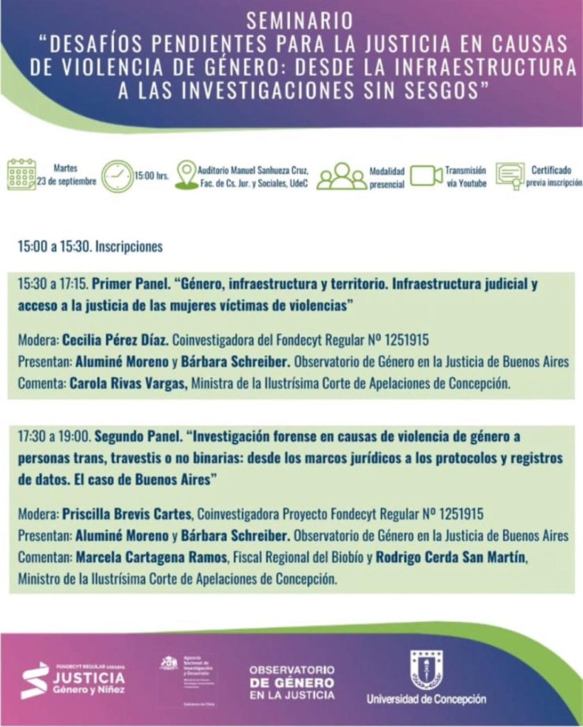 La Universidad de Concepción, el Observatorio de Género en la Justicia en el marco del Fondecyt Regular Iniciativa Justicia Género y Niñez organizan el Seminario “Desafíos pendientes para la justicia en causas de violencia de género: desde la infraestructura a las investigaciones sin sesgos”