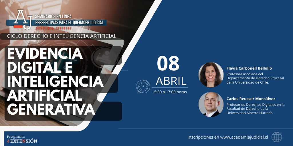 La Academia Judicial, en el marco del ciclo “Derecho e Inteligencia Artificial” del programa Seminarios en línea: Perspectivas para el quehacer judicial, organiza el seminario “Evidencia digital e inteligencia artificial generativa”, instancia orientada a analizar los desafíos probatorios y procesales asociados al uso de tecnologías emergentes.