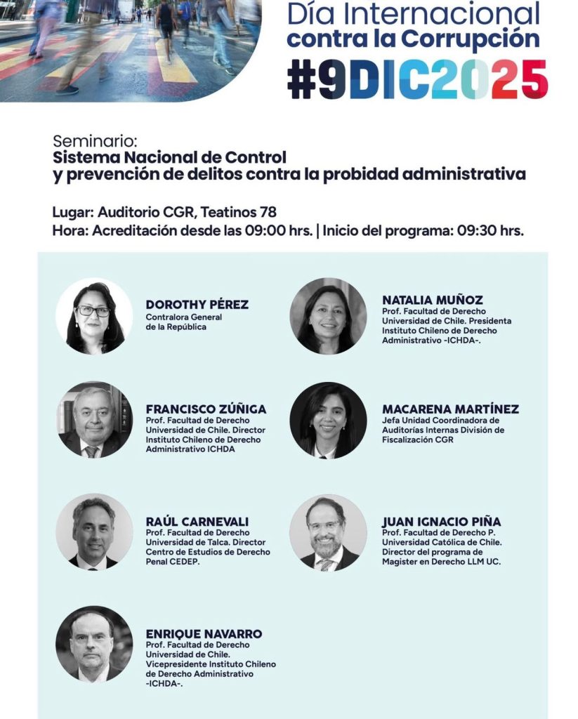 El evento se realizará el 9 de diciembre de 2025, desde las 09:00 horas e inicio del programa a las 09:30 horas, en el Auditorio CGR, ubicado en Teatinos 78.