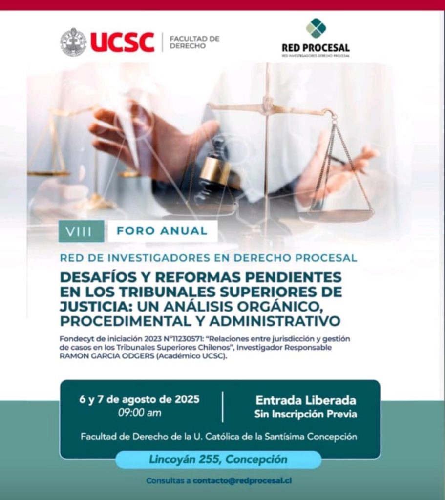 RAMON GARCIA ODGERS (Académico UCSC), organizan el VIII Foro Anual. Red De Investigadores En Derecho Procesal. Desafíos y Reformas Pendientes en los Tribunales Superiores de Justicia: Un Análisis Orgánico, Procedimental y Administrativo