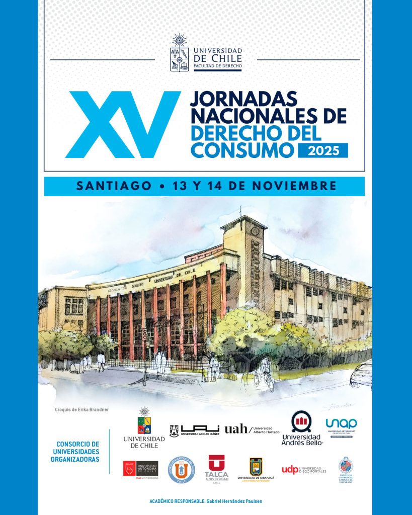 La Facultad de Derecho de la Universidad de Chile será sede de la XV versión de las Jornadas Nacionales de Derecho del Consumo, un espacio de encuentro académico organizada por las universidades: